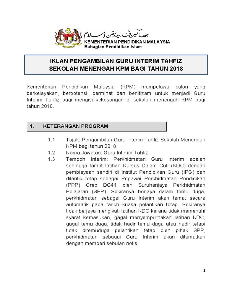 Hebahan panggilan temu duga pegawai perkhidmatan pendidikan gred dg41 bagi calon guru interim tahfiz/dini/pendidikan hebahan panggilan temu duga pegawai perkhidmatan pendidikan gred dg41 bagi calon guru interim tahfiz/dini/pendidikan islam. Senarai semak dokumen jawatan guru interim tahfiz dan guru interim dini di sekolah menengah. Sehingga tamat latihan kursus dalam cuti (kdc) di institut pendidikan guru (ipg) dan akan. Now you can relax while a tts bot read the news for you. Semoga entri hebahan penempatan guru interim pismp disember 2017 ini bermanfaat.