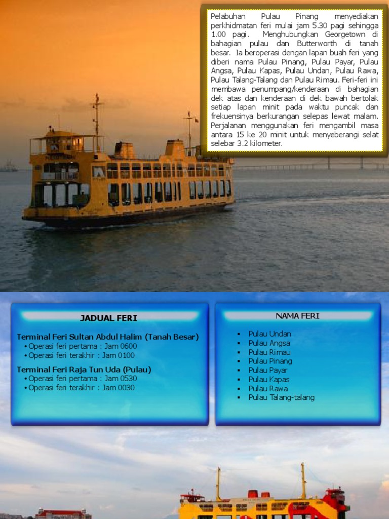 Jadual Feri Pulau Pinang : Zafrul menteri kewangan dan guan eng bekas.. Negeri ini terbahagi kepada dua bahagian oleh selat melaka (lihat peta). Jadwal sholat untuk ambon, gmt +9. Explore more searches like feri pulau pinang. Pelayaran selama 15 minit ini membolehkan penumpang menikmati pemandangan indah pulau. Kota ini menjadi pelabuhan feri untuk pelayaran ke pulau lombok nusa tenggara barat dan ke pulau nusa penida.