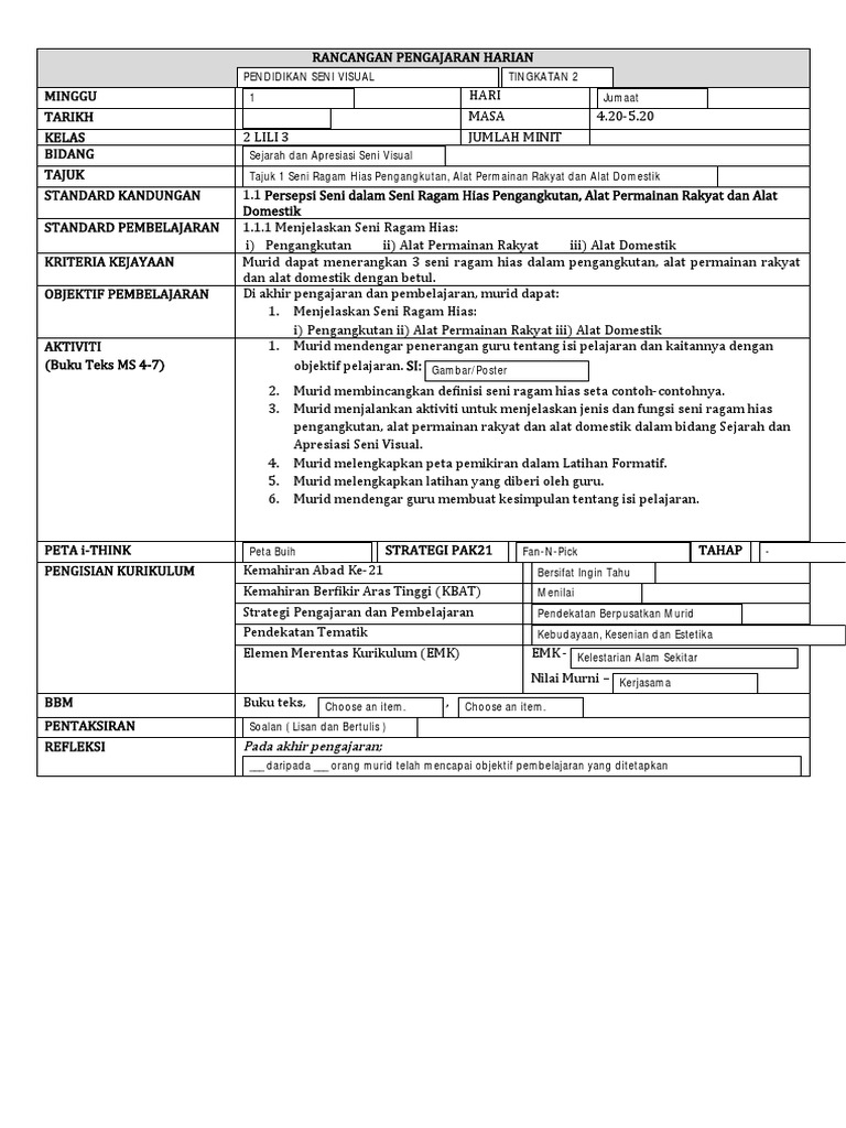 Seni ragam hias • ornamen • iaitu hiasan dalam seni kraf atau karya seni • boleh diolah supaya rupanya menjadi pelbagai ragam. Pengertian ragam hias, secara etimologis frase ragam hias berasal dari bahasa yunani, yaitu ornare, yang artinya hiasan atau menghias. Karya seni inilah yang dapat berupa tulisan atau batik, songket, ukiran, tenun. Semua unsur hias yang ada mengikuti pola tersebut, sehingga ragam bentuk floral sebagai motif yang sangat mudah dijumpai hampir diseluruh pulau indonesia. Sejarah dan apresiasi seni visual online worksheet for tingkatan 2. Ragam hias biasanya memiliki pola atau susunan yang berulang. Ragam hias dapat dihasilkan dari proses menggambar, memahat. Seni ragam hias boleh diolah supaya rupa bentuknya menjadi pelbagai ragam. Menjana hasil persembahan portfolio seni ragam hias pengangkutan, alat permainan rakyat dan alat domestik. Diterbitkan olehdidi alfin telah diubah 6 tahun yang lalu. Seni ragam hias pengangkutan lessons tes teach. Скачать бесплатно mp3 psv tingkatan 2 tajuk 1 seni ragam hias pengangkutan alat permainan rakyat dan alat domestik. Pola hias merupakan unsur dasar yang sering digunakan sebagai acuan dalam membuat rancangan hiasan.