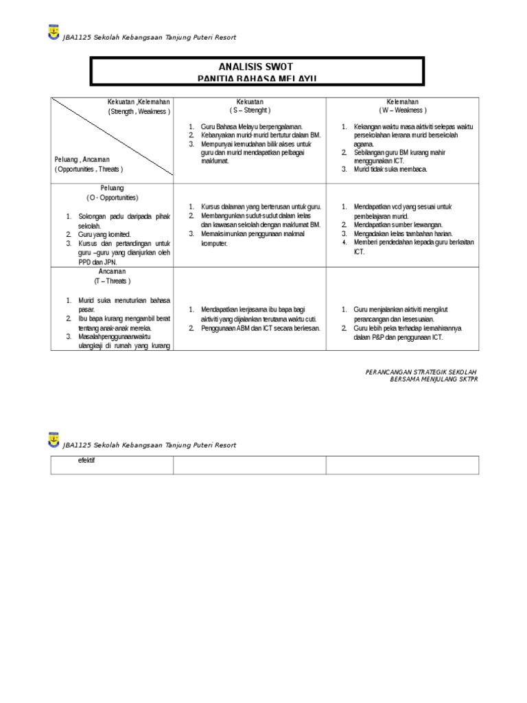 Analisis Swot Bahasa Melayu : Post Mortem Bahasa Melayu Spm 2015 A Analisa - Melalui analisis swot diperoleh bahwa pt.