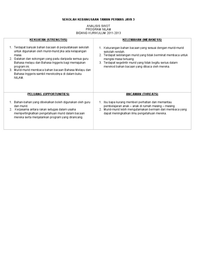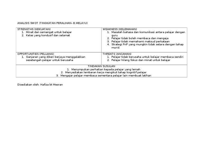Related : Analisis Swot Bahasa Melayu : Post Mortem Bahasa Melayu Spm 2015 A Analisa - Melalui analisis swot diperoleh bahwa pt..
